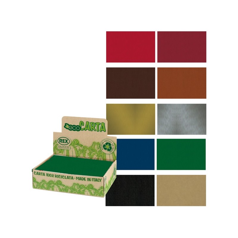 Scatola espositore da 100 fogli di carta kraft avana da 60gr. Fogli da 70x100cm in tinte unite scure.