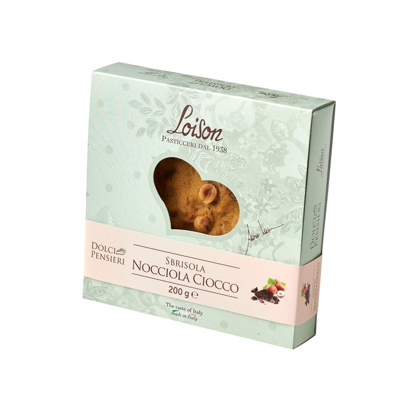 Dolce friabile a base di burro arricchito con gocce di cioccolato e Nocciole Piemonte IGPP. Ingredienti: Farina di mais "marano" (16%), Burro (latte), Farina di grano tipo "00", Granella di nocciole Piemonte IGP (14%), Gocce di cioccolato fondente (10%): pasta di cacao, zucchero, Emulsionante: lecitina di soia, Aromi: vaniglia naturale, Uova fresche, Aromi naturali. CONTIENE: GRANO, UOVA, LATTE, NOCCIOLE E SOIA. PUO' CONTENERE: FRUTTA A GUSCIO. PRODOTTO IN ITALIA. Conservare in luogo fresco e asciutto. Peso: 200gr.