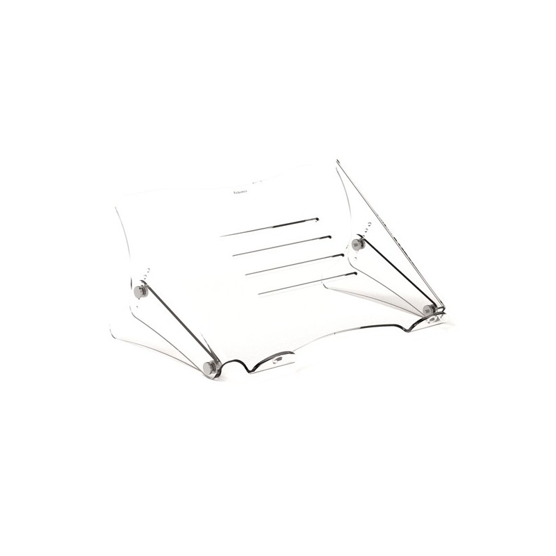 Supporto notebook regolabile Clarity™. Evita di affaticare collo e occhi alzando il notebbok fino a 5 livelli (da 134 a 204mm) portandolo così a un'altezza di visione più confortevole. Si integra perfettamente in qualsiasi ambiente d’ufficio grazie alla costruzione in acrilico trasparente di qualità spessa 4 mm. adatto a notebbok fino a 15" di schermo e peso massimo di 6kg. Da usare con mouse e tastiera collegati. Dimensioni (Lx Px A): 35x27x13,4-20,4cm.