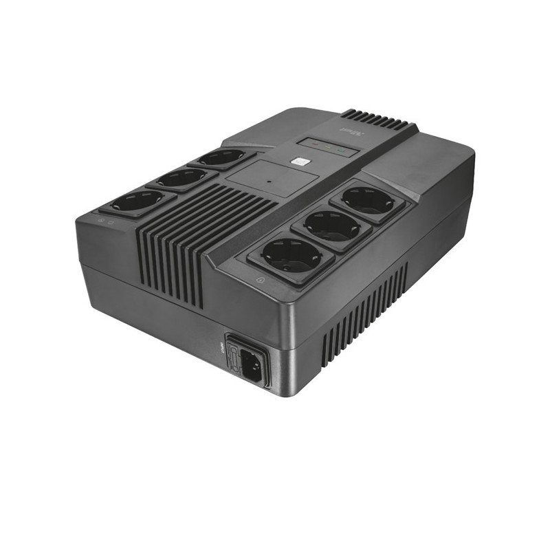 Affidabile UPS da 800 VA con batteria integrata. Eroga temporaneamente l’energia della batteria durante le interruzioni di corrente; impedisce di perdere dati e danneggiare l’hardware. 3 prese a parete batteria e protette da sovratensione e 3 protette da sovratensione, per collegare computer, periferiche di computer, apparecchiature di rete, TV a schermo piatto, prodotti di domotica e sistemi di allarme. Prese protette da sovratensione per impedire danni provocati da sovratensioni, picchi e fluttuazioni. Funzione AVR per garantire una stabile tensione di uscita a 230 V. Chiari indicatori ottici e acustici per gli allarmi. Protezione da sovraccarico e cortocircuito. Supporto per un semplice montaggio a parete. Garanzia estesa di € 20.000 sulle apparecchiature connesse.