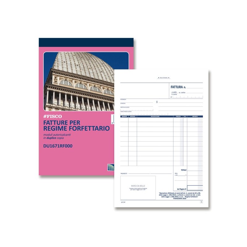 Blocco fatture per regime forfettario 50 copie autoricalcanti, f.to 21,5x14,8cm.