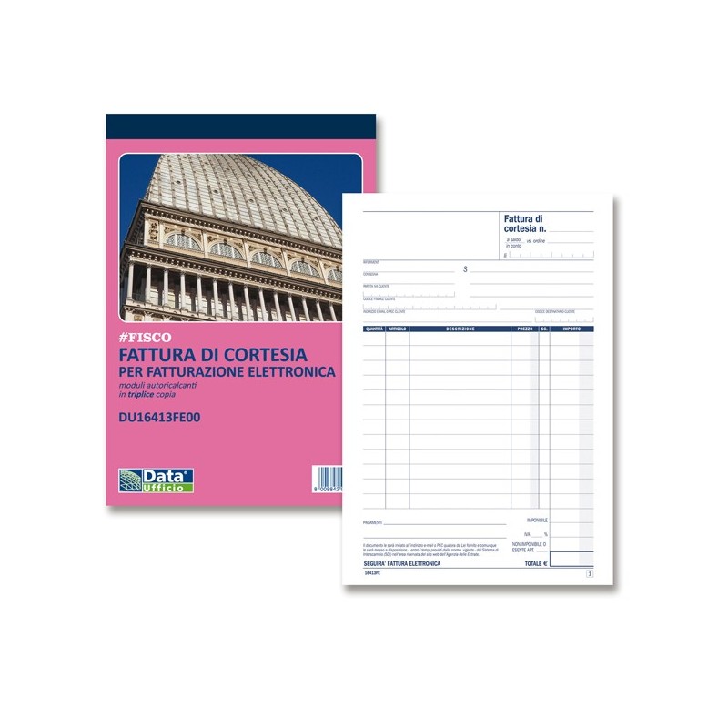 Blocco fatture di cortesia 33/33/33 copie autoricalcanti ì, f.to 21,5x14,8cm.
