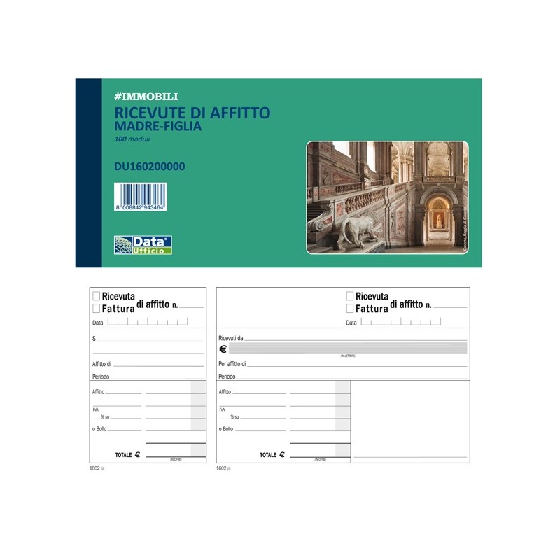 Blocco 100 ricevute/fatture di affitto madre-figlia. Formato 10x21,5cm.