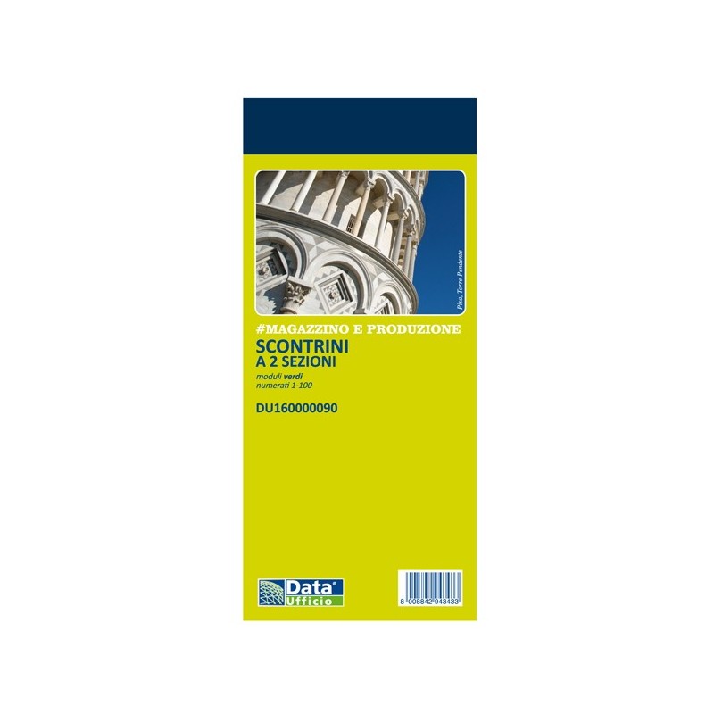 Blocco scontrino 2 sezioni,100 copie numerate, colore verde. Formato 5,8X13cm.