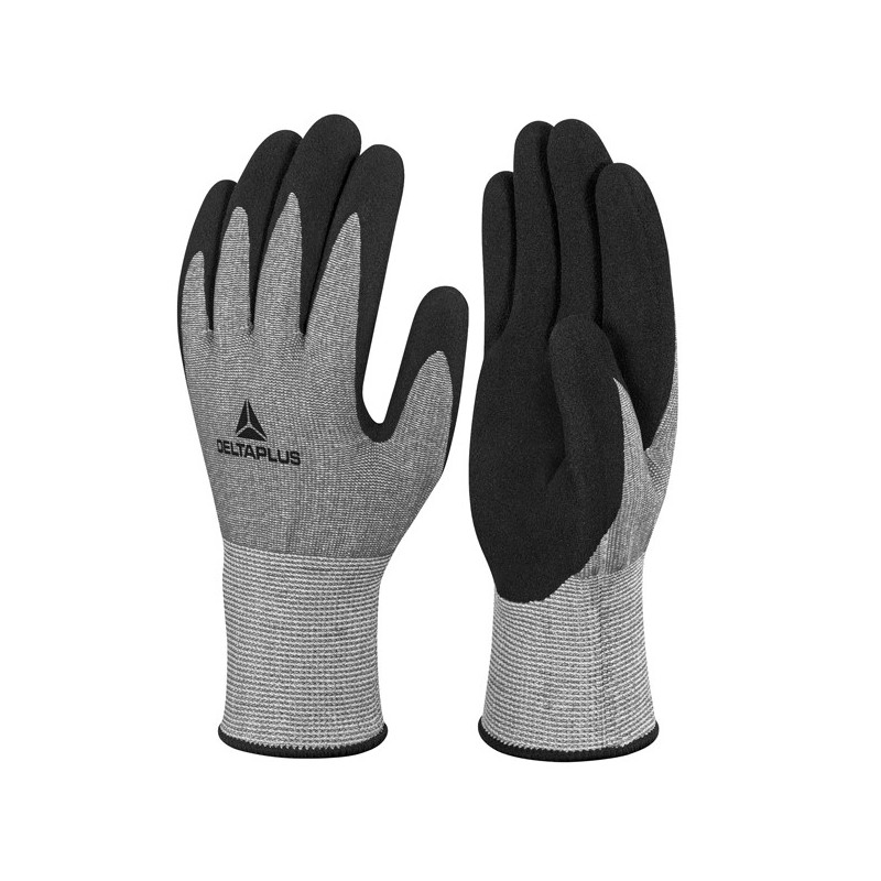 Fibra alte prestazioni Xtrem CUT®. Rivestimento in schiuma di nitrile, finitura granulosa sul palmo e la punta delle dita. Finezza 13. Colore: grigio/nero. Categoria DPI: 2. Certificazione CE. Conformità alle norme EN388:2016 e EN420:2003+A1:2009.