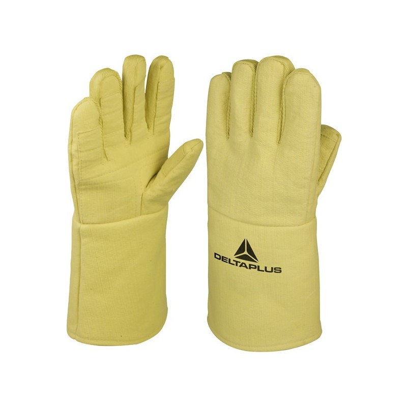 Guanti anti-taglio & anti-calore 500°c. Esterno aramide tessuto. Interno 100% cotone. Lunghezza 36 cm. Manichetta in tessuto aramidico 16 cm. Colore giallo. Taglia unica. Caratteristiche speciali: Doppio isolamento, Ottime prestazioni al taglio e al calore, Protezione dell'avambraccio, Protezione contro gli effetti del calore da contatto. Fino a 250°C per 1 minuto. Fino a 500°C per 30 secondi. Categoria DPI: 2. Certificazione CE. Conformità alle norme EN420:2003+A1:2009, EN388:2016 e EN407:2004.