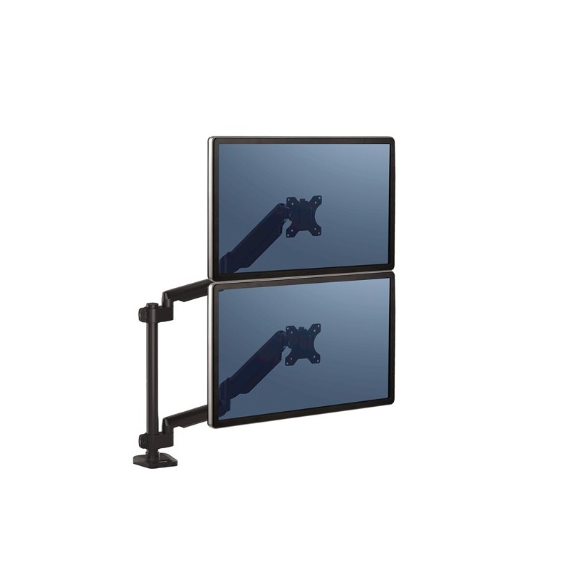 Bracci monitor completamente regolabili con innovativa tecnologia a molle a gas per spostamenti e regolazioni senza sforzi del monitor. Il sistema ordinacavi tiene la scrivania in ordine, e la porta USB alla base permette di connettere fino a due dispositivi. Facile montaggio a morsa o tramite foro e ganascia. Varie configurazioni di schermi disponibili. Compatibilità VESA - 75x75/100x100. Per scrivanie di spessore compreso tra 19 e 120mm. Peso max monitor: 20kg. F.to max monitor: 27"/68,58cm. Rotazione: 360°. Inclinazione: +85/15°.