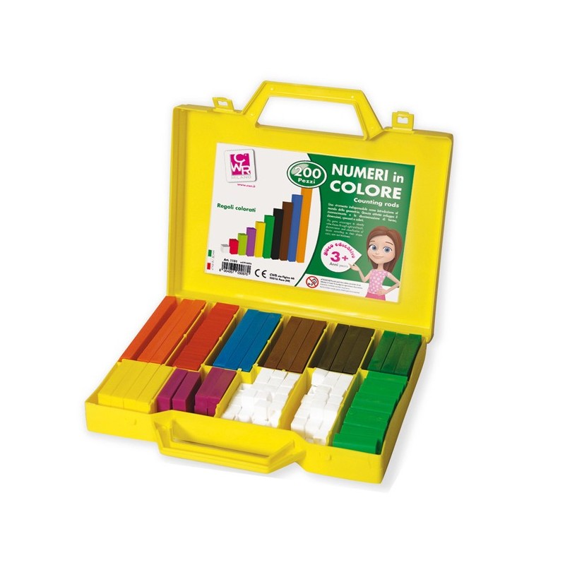 Strumento per l'insegnamento dei primi concetti matematici ai bambini. Si appredono le equivalenza, le associazioni valore numerico/colore, i primi calcoli aritmetici.
