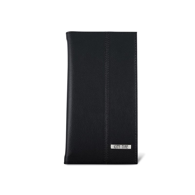 Portabiglietti in similpelle morbido colorato. Interno in tessuto a righe con tasca. Può contenere 72 biglietti da visita.