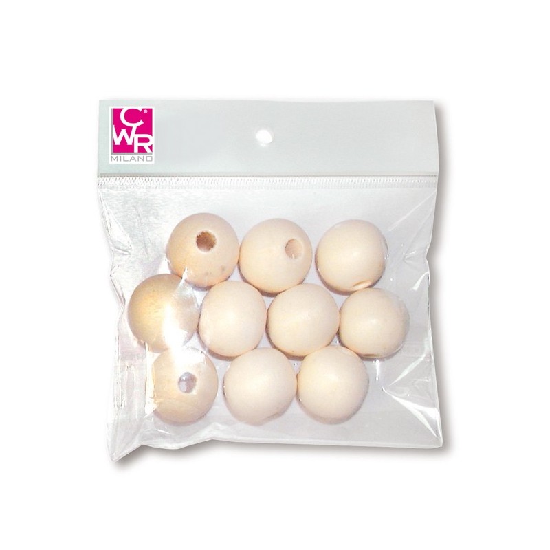 Sfere decorative con foro, in legno naturale Ø30mm. Busta da 4 pezzi.