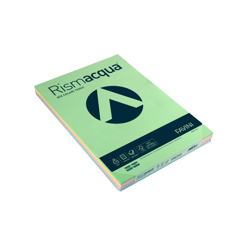 Carta da 140grammi multiuso dai colori tenui per l’ufficio, la casa, la scuola e il tempo libero. Ideali per tutti i sistemi di copiatura e stampa (inkjet, laser, offset…). Tutti i colori sono resistenti all’acqua e alla luce. Le carte sono ricavate da impasti a base di cellulose selezionate chlorine free (ECF) non provenienti da foreste vergini. Formato A3 29,7x42cm. Risma da 200 fogli in 5 colori: lilla 06, giallo chiaro 07, celeste 08 , verde chiaro 09, rosa 10.