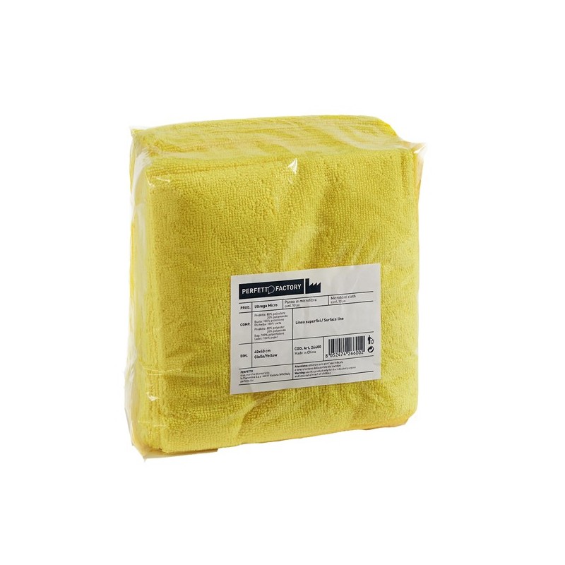 Panno multiuso in micrtofibra (80% poliestere, 20% poliammide). Dimensioni: 40x40cm. In confezione da 10 panni colore giallo.