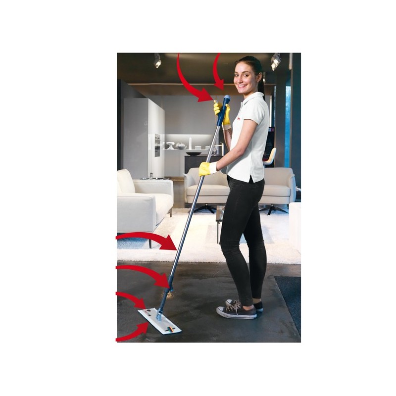 Il kit è composto da un manico in acciaio inox che permette di spruzzare acqua e/o soluzione detergente direttamente sul pavimento, un pratico telaio in alluminio e due mop in microfibra che assicurano grande scorrevolezza e ottime performance. Il kit è completato da 5 panni in microfibra di grandi dimensioni (50x40cm), ideali per la pulizia dei vetri. Le sue dimensioni contenute lo rendono il sistema ideale dove gli spazi sono ristretti. SprayPro è l'ideale da usare nell'ambiente HoReCa e nel General Building, dove si lavora su diversi tipi di pavimenti, purchè il livello di sporco sia da basso a medio. Può essere utilizzato per lavaggi a secco, umido o bagnato e i mop possono essere lavati a mano o in lavatrice.