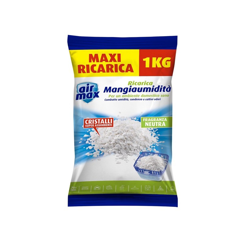 Sali universali di ricambio per deumidificatori. Assorbono l'umidità in eccesso, contrastano il formarsi di muffe, prevengono le macchie sui muri e combattono i cattivi odori.