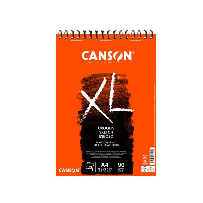Album spiralato lato corto con carta a grana leggera ideale per matita, carboncino, sanguigna e pastello.