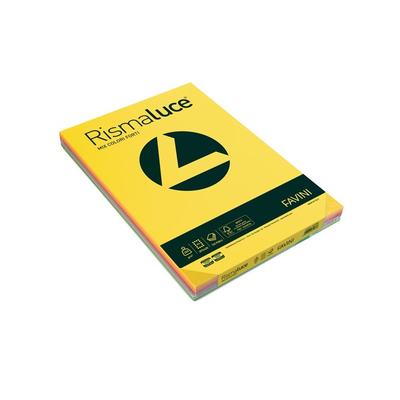 Carta da 200grammi multiuso dai colori forti per l’ufficio, la casa, la scuola e il tempo libero. Ideali per tutti i sistemi di copiatura e stampa (inkjet, laser, offset…). Tutti i colori sono resistenti all’acqua e alla luce. Le carte sono ricavate da impasti a base di cellulose selezionate chlorine free (ECF) non provenienti da foreste vergini. Formato A3 29,7x42cm. Risma da 125 fogli in 8 colori: giallo sole 53, giallo oro 52, scarlatto 61, verde 60, arancio 56, ciclamino 58, azzurro 55, pistacchio 54.