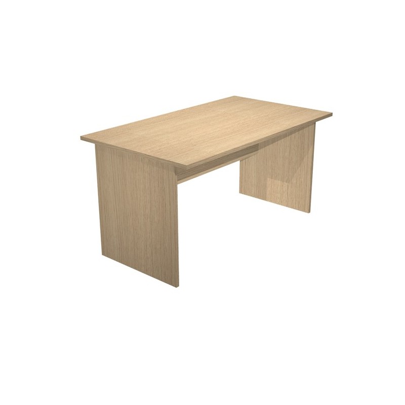 Scrivanie con dimensioni conformi alle normative sulla sicurezza dei posti di lavoro in ufficio. Bordatura dei piani in ABS 2mm antishock ed assenza di spigoli vivi. Le scrivanie sono disponibili nella versione con fianchi pannello in melaminico (sp. 22 mm) o con fianchi in metallo ad L verniciati effetto cromo completi di piedini regolabili in altezza e canalina passacavi ispezionabile. Scrivania operativa con fianchi legno, dimensioni: L140 x P80 x H72cm