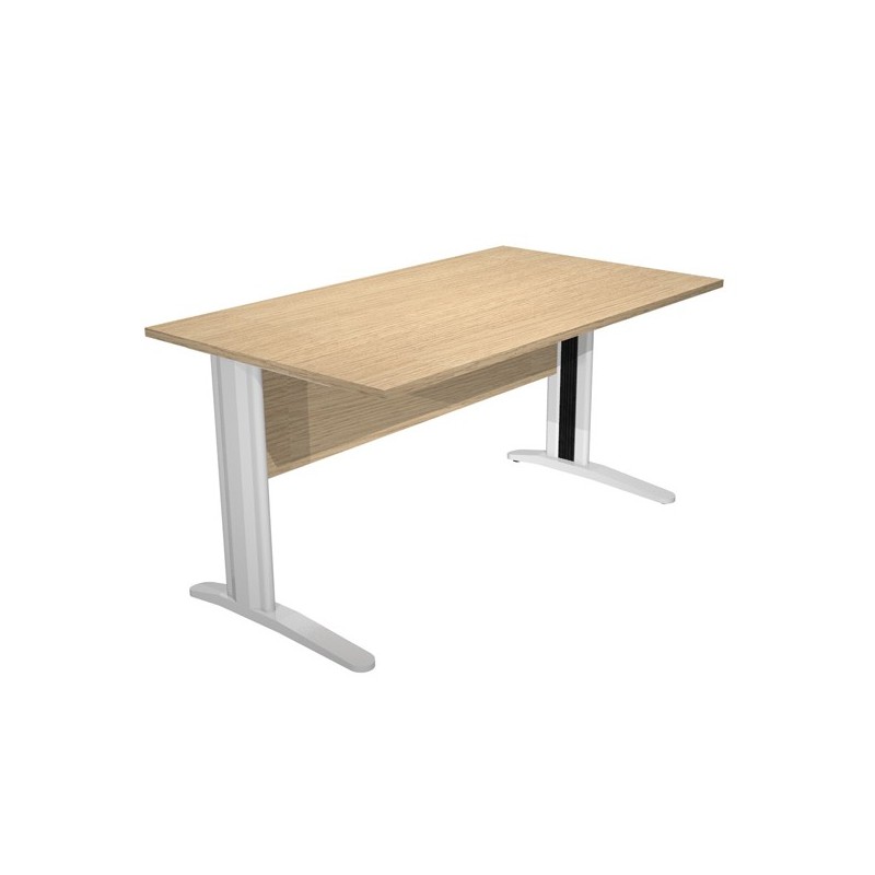Scrivanie con dimensioni conformi alle normative sulla sicurezza dei posti di lavoro in ufficio. Bordatura dei piani in ABS 2mm antishock ed assenza di spigoli vivi. Le scrivanie sono disponibili nella versione con fianchi pannello in melaminico (sp. 22 mm) o con fianchi in metallo ad L verniciati effetto cromo completi di piedini regolabili in altezza e canalina passacavi ispezionabile. Dimensioni: L140 x P80 x H72cm