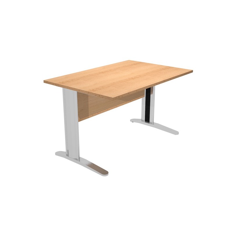 Scrivanie con dimensioni conformi alle normative sulla sicurezza dei posti di lavoro in ufficio. Bordatura dei piani in ABS 2mm antishock ed assenza di spigoli vivi. Le scrivanie sono disponibili nella versione con fianchi pannello in melaminico (sp. 22 mm) o con fianchi in metallo ad L verniciati effetto cromo completi di piedini regolabili in altezza e canalina passacavi ispezionabile. Dimensioni: L120 x P80 x H72cm