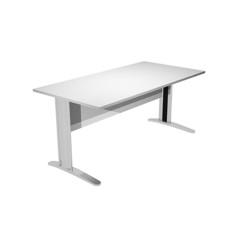 Scrivanie con dimensioni conformi alle normative sulla sicurezza dei posti di lavoro in ufficio. Bordatura dei piani in ABS 2mm antishock ed assenza di spigoli vivi. Le scrivanie sono disponibili nella versione con fianchi pannello in melaminico (sp. 22 mm) o con fianchi in metallo ad L verniciati effetto cromo completi di piedini regolabili in altezza e canalina passacavi ispezionabile. Dimensioni: L120 x P80 x H72cm
