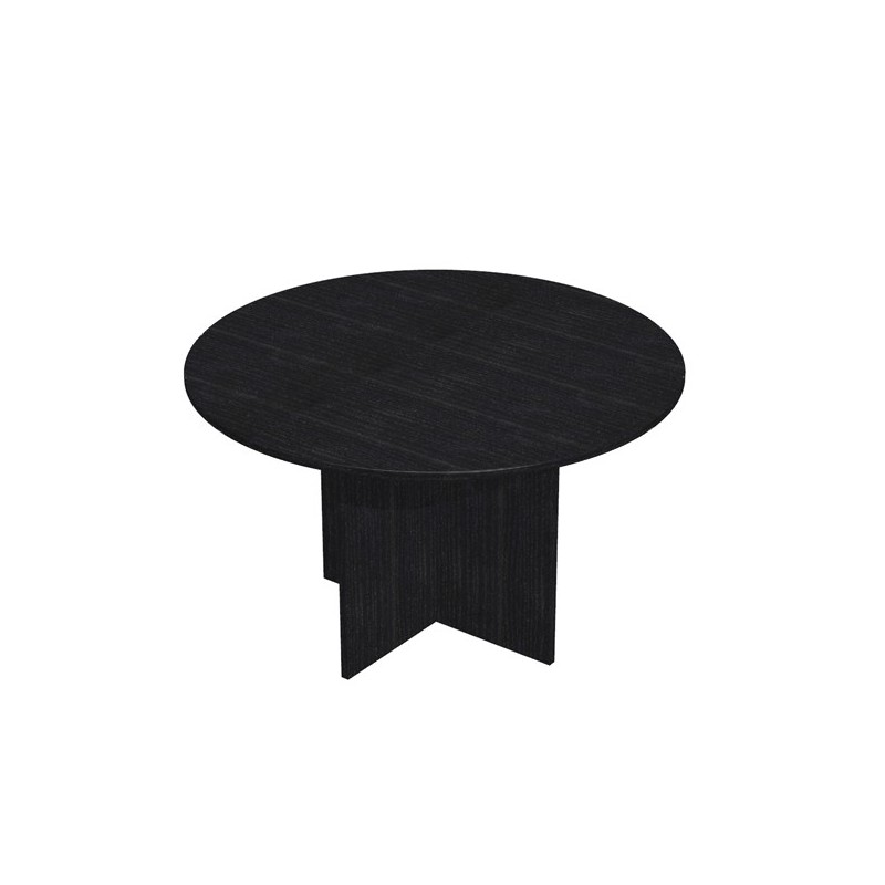 TAVOLO RIUNIONE tondo da 4 POSTI Ø120 x H72cm. Realizzato in melaminico spessore 22 mm, certificato classe E1. Piani bordati con profili antiurto sagomato, gambe in melaminico sp. 22 mm e piedini regolabili per la massima stabilità.