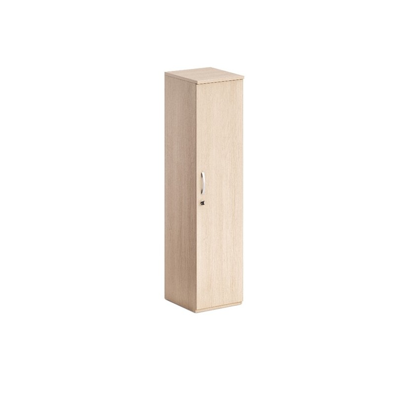 Armadi con anta dotata di serratura e maniglie in metallo. Internamente 3 ripiani spostabili + 1 fisso. Top sp. 25mm, struttura sp. 18mm, ripiani riposizionabili da 18mm. Rifinito posteriormente nello stesso colore della struttura in modo da poter essere utilizzato come parete divisoria. Piedini regolabili in altezza. Dimensioni: L45x P46 x H181,8cm.