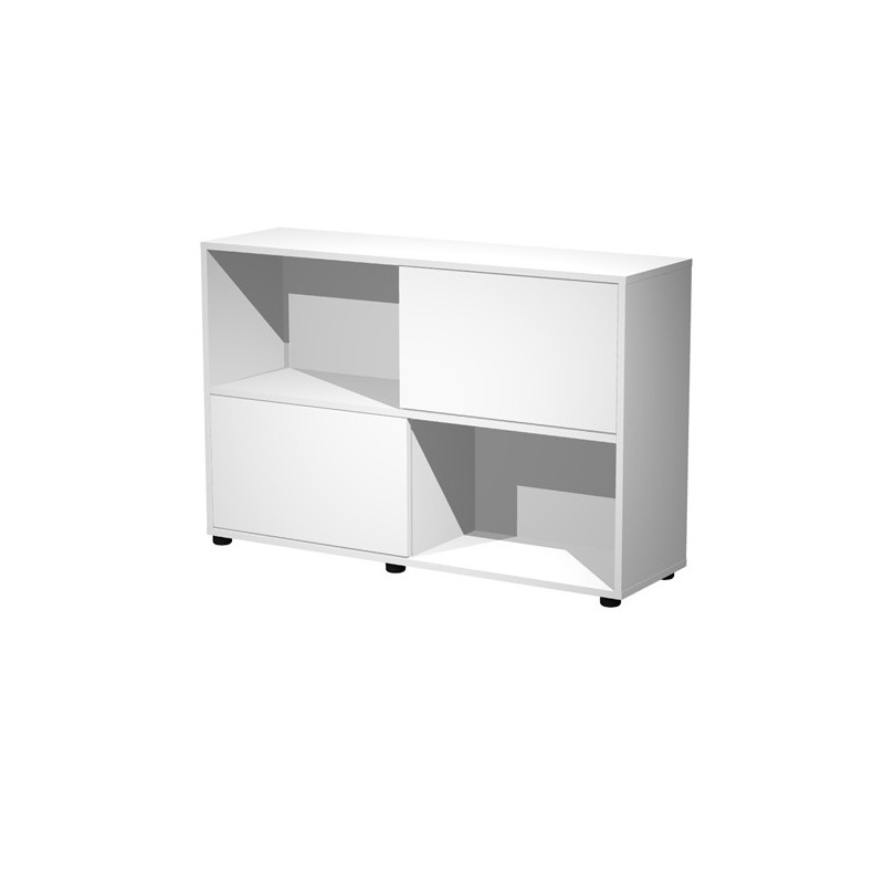 Libreria bassa Tetris a 2 ripiani ante scorrevoli - 120x35x79 cm - bianco/bianco - Artexport