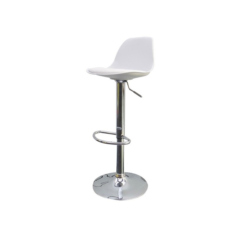 Sgabello con seduta regolabile in polipropilene e cuscino in similpelle imbottito facilmente lavabile. Base e struttura con poggiapiedi in acciaio cromato. Altezza della seduta regolabile da 59 a 71cm tramite leva con meccanismo di pompa a gas. Dimensioni: 39x42cm - H 83/104cm. Consegnato smontato (di facile assemblaggio).