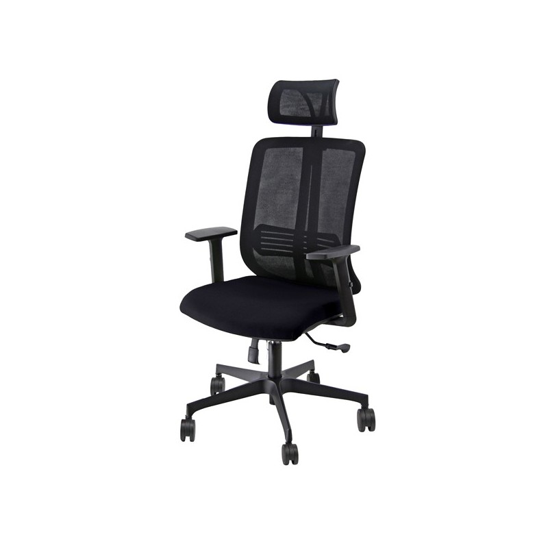 Sedia girevole operativa con schienale in rete - supporto lombare regolabile - elevazione a gas - meccanismo synchro con 3 blocchi antishock con traslatore e variatore di forza a contatto permanente; Seduta in rivestimento PLUS - BONDAI NO FLAME 100% PL. Completa di braccioli regolabili e poggiatesta. Altezza totale: 124-134cm; Profondità tot: 68cm; Alt. schienale: 58cm (80); Larghezza schienale: 46cm; Larghezza sedile: 48cm; Profondità sedile: 47cm; Alt. sedile: 42-55cm.