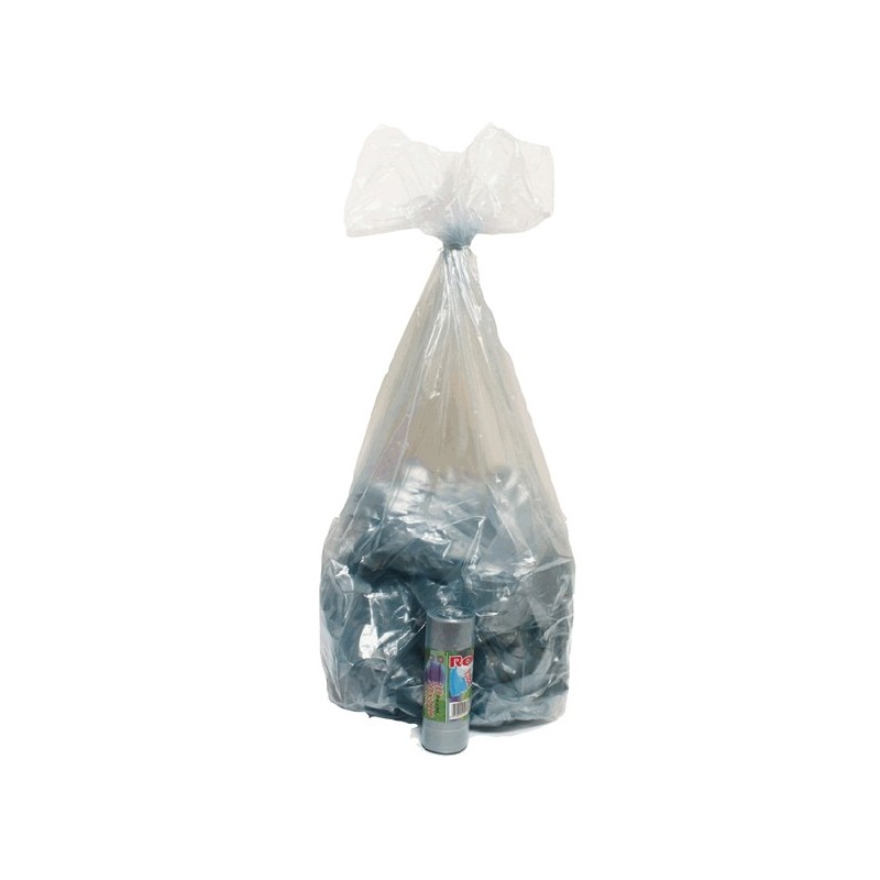 Sacchi pattumiera di colore azzurro trasparente in MDPE rigenerato + PLT lineare. Formato 70x110cm 110Lt 22µ. In rotolo compatto da 10 sacchi con fascetta. Prodotto con alta resistenza meccanica. Adatti per la raccolta differenziata.