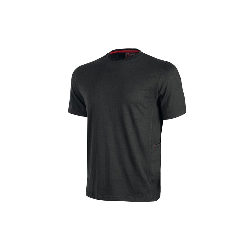 T-Shirt manica corta in jersey di polycotone. Slim-Fit. Collo e bordo manica a costine elasticizzate. Fettuccia para-sudore bianca. Tasca porta cellulare sul fianco sinistro con travetta rossa. Nastro rosso/re ex su manica destra. Conformità alle norme CEE UNI EN ISO 13688:2013 MISURE/TAGLIE DISPONIBILI: S - 4XL COMPOSIZIONE: 100% COTONE