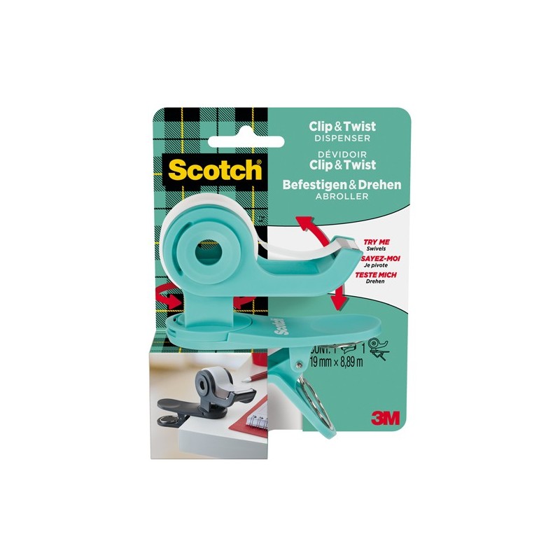 C&T dispenser per nastro adesivo colore nero con 1 rotolo di nastro adesivo Magic 810 19x8,89 mt. Flessibile e versatile Può essere applicato sia su superfici verticali che orizzontali Si usa con una mano sola • Facile da ricaricare • Utilizzabile con nastro Scotch® Magic™ con larghezza di 19mm e una lunghezza fino a 33 mt. La doppia rotazione della base Si attacca a diversi tipi di superficie, per una massima flessibilità e un utilizzo con una sola mano permette un utilizzo sia orizzontale che verticale.