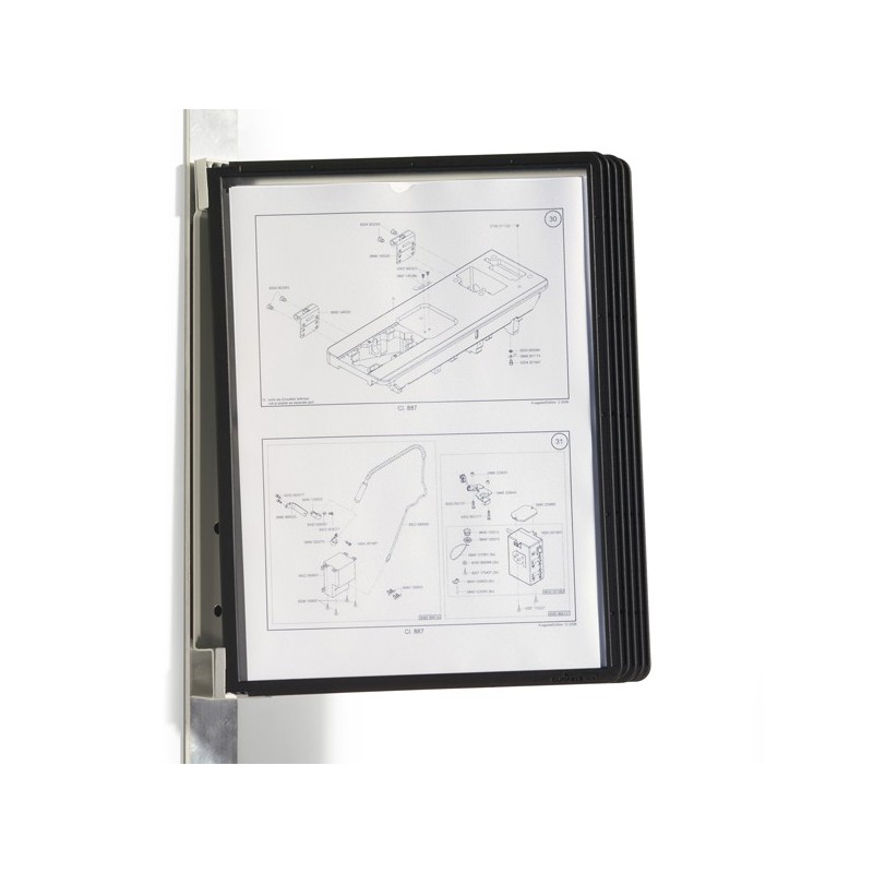 Leggio da parete robusto e performante, dotato di dorso con magnete per essere appeso senza bisogno di forare. Ideale per industrie, magazzini ed ambienti in cui è necessario rapido accesso ad informazioni importanti vicino o sopra macchinari. I pannelli in polipropilene sono semplici da rimuovere e riposizionare ed i documenti contenuti saranno sempre prottetti e a portata di mano. Il set è completo di un supporto in metallo con magnete e 5 pannelli espositivi SHERPA® formato A4.