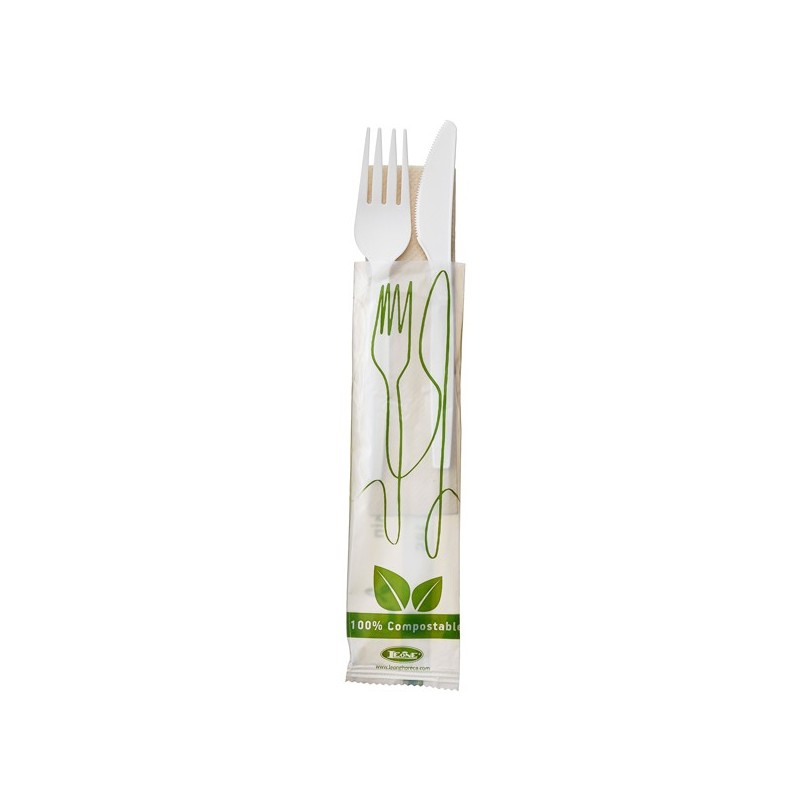 Bis coltello e forchetta - CPLA - con tovagliolo - Leone - conf. 250 pezzi