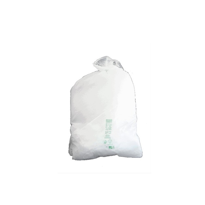 Sacchi pattumiera di colore bianco in BIOPOLIMERO BIODEGRABILE. Formato 70x110cm. 110Lt 20,6µ. In rotolo da 20 sacchi. Prodotto con alta resistenza meccanica adatti alla raccolta della frazione umida.
