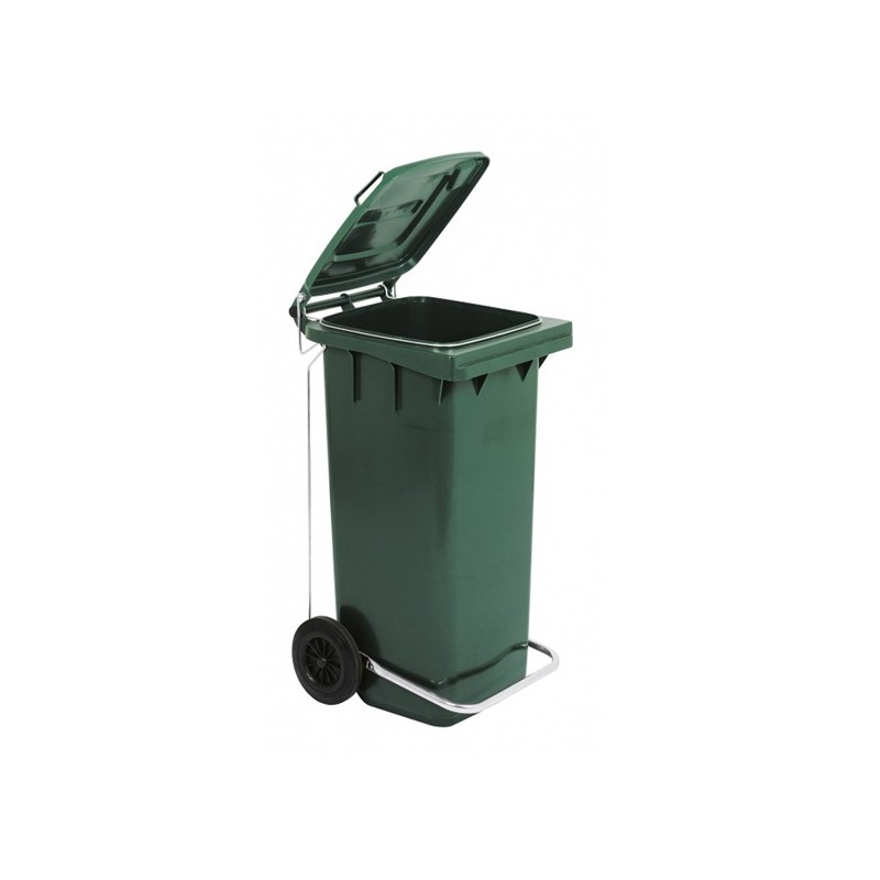 Kit pedale + anello in metallo per Bidoni carrellati da 120Lt. Il kit è necessario per rendere il bidone con coperchio apribile a pedale, inpedendo di fatto qualunque contatto e contaminazione con il contenitore.