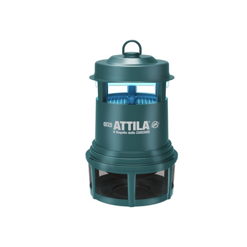 Zanzariera Attila adatta per esterni , casa, terrazze, giardini, aree di ristorazione, all’aperto o in tendoni, allevamenti, canili, scuderie. è silenziosa, non usa pesticidi, può stare sempre accesa. Richiama e cattura zanzare comuni, mosche, pappataci, moscerini, vespe e cimici. Protegge fino a 1200mq. Assorbimento: 35 Watt . Misure 490 h x 300 mm. 3metri di cavo elettrico da esterno incluso + 2 lampade UV di ricambio.