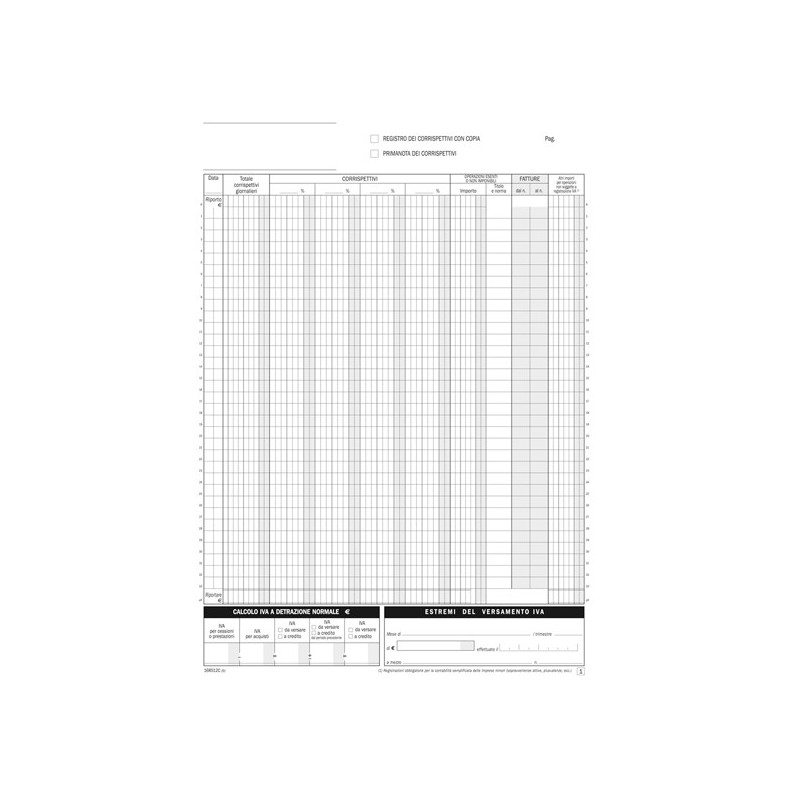Blocco registro corrispettivi 12/12autoricalcanti. Formtato 29,7x21,5cm.