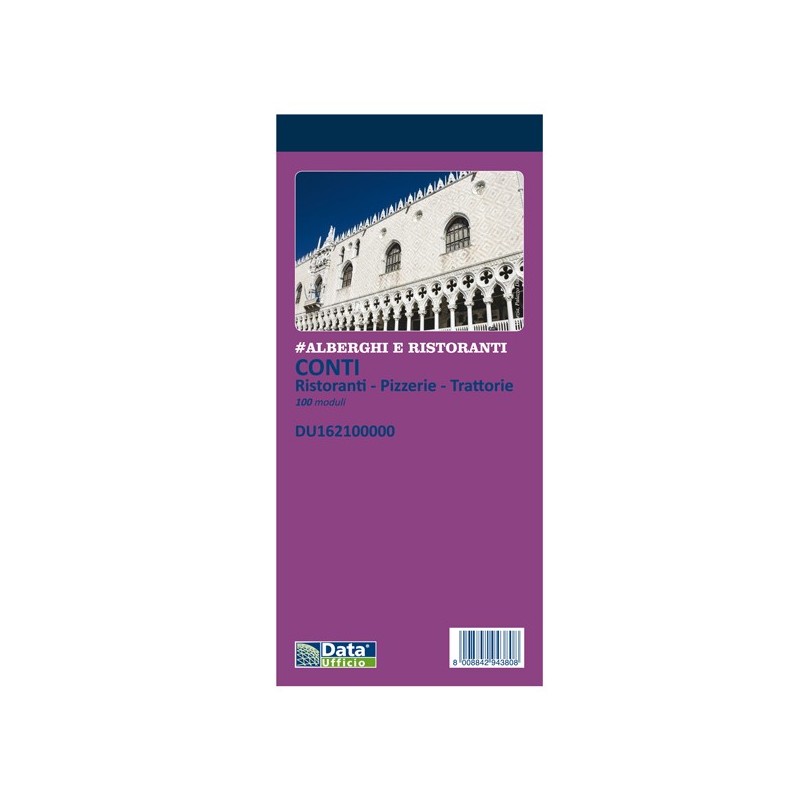 Blocco conti ristoranti/pizzerie/trattorie, 100copie. Formato 21,5x10cm.
