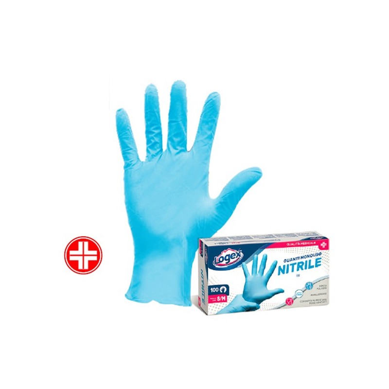 Guanti monouso in nitrile senza polvere. Latex free, preservano da possibili reazioni allergiche correlate alle proteine del lattice di gomma naturale. Di colore azzurro, ambidestri, con polsino rinforzato salva strappo ed antigoccia. I guanti Logex in Nitrile sono testati per uso medicale e proteggono da possibili rischi derivanti dal contatto con agenti chimici e biologici. Classificazione: Dispositivo medico Classe I, non sterile; DPI categoria I, protezione da rischi minimi. Certificazione CE. Conformità al regolamento (CE) n. 1935/2004.