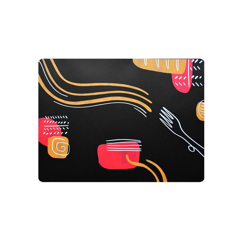 Un omaggio alla cucina italiana in chiave astratta. Tovaglietta americana 41x31cm realizzata su pelle rigenerata (spessore 1,8mm). Lavabile con un panno umido.