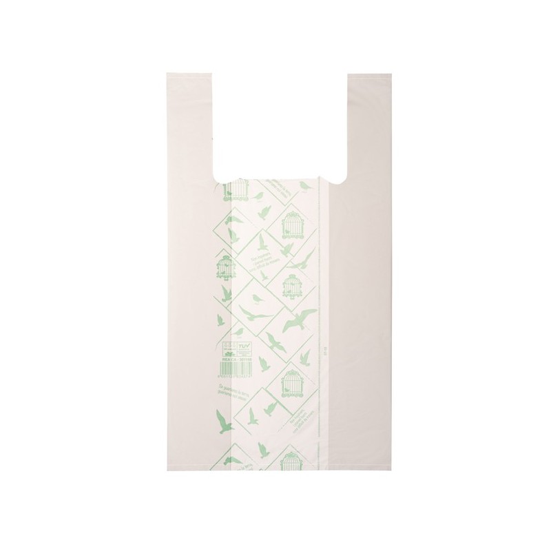 Bio-Shopper a norma UNI EN 13432:2002 biodegradabili e compostabili. Dimensione 28x50cm, soffietti laterali 7cm.