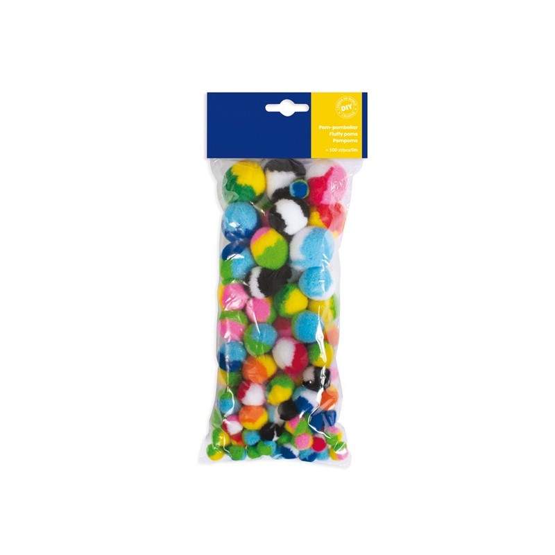 Mix di Pom-pon colorate a strisce. Diam. 10-35mm.