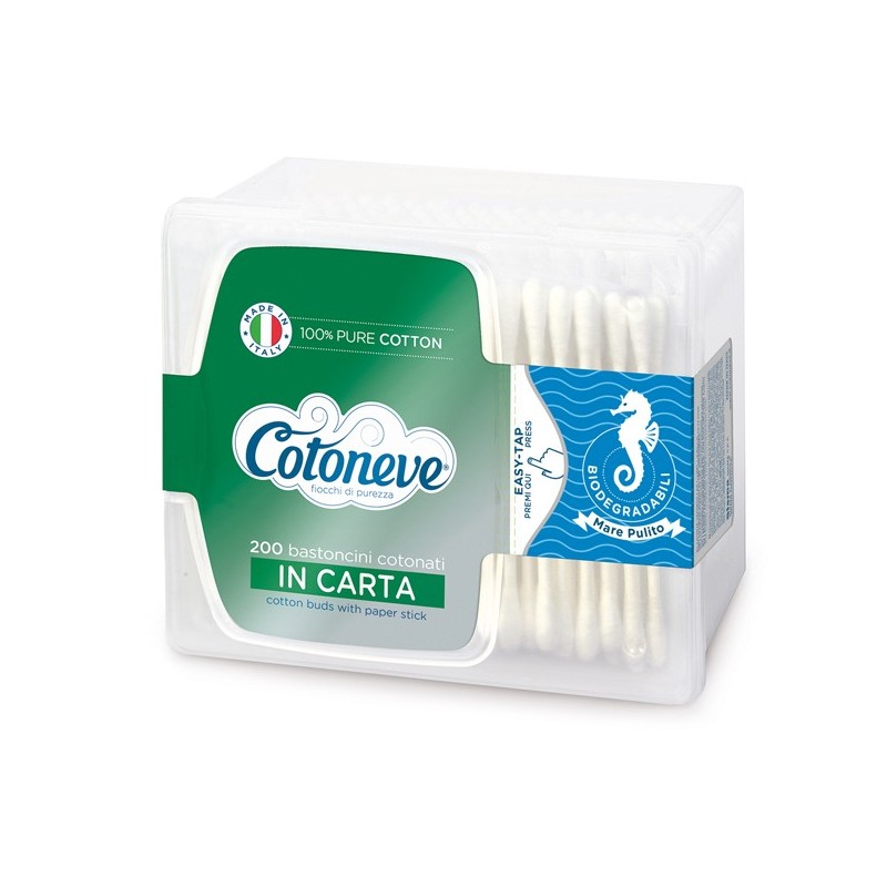 Cofanetto rettangolare da 200 bastoncini in cotone microbiologicamente controllati. Ideali per l'igiene quotidiana di tutta la famiglia. Composizione teste: cotone; Composizione bastoncino cotonato: carta. Lunghezza: 77mm; Colore:bianco.