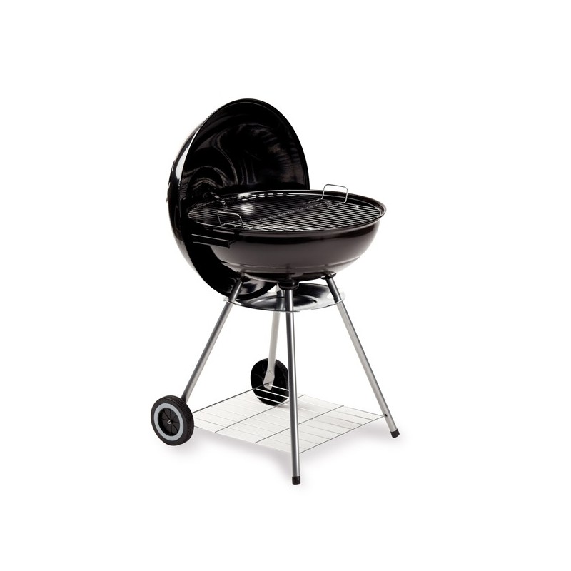 Struttura in acciaio smaltato di colore nero, griglia in acciaio Ø 45 cm. Dotato di due ruote per un facile spostamento. Prodotto da assemblare. Dimensioni: H73 x P50 x L45cm – peso 7,5kg.Articolo destinato ad esclusivo uso domestico. Non adatto ad uso pubblico.