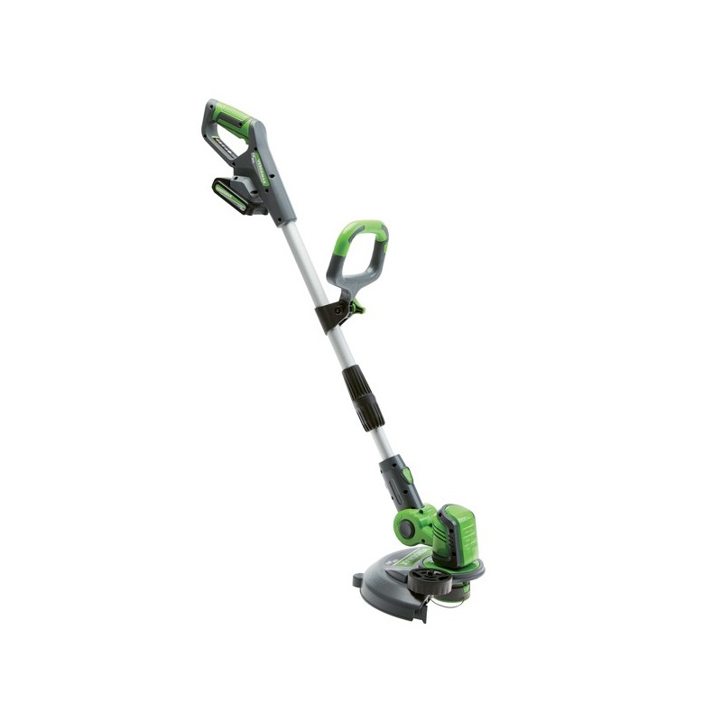 Il trimmer a batteria Li-ion è adatto per i lavori in giardino di rifinitura dei bordi di aiuole o prati. E' fornito con una batteria da 20V - 2Ah e relativo caricatore standard e della testina precaricata con filo Ø 1,6mm x 4mt. Manico regolabile da 107 a 142cm. Dimensioni: H139 x P34 x L25cm - peso 2,3kg inclusa batteria. Batteria di ricambio art. 4352. Testina di ricambio con filo art. 4360. ATTREZZO - Tensione di funzionamento 20V DC - Velocità di rotazione della testina circa 7500 +/- 750 giri/min - Diametro di taglio 254 mm (10”) oppure 305 mm (12”) - Pressione sonora 92 dB(A) K= 3.0 dB(A) - Diametro del filo di nylon 1.6 mm CARICA BATTERIA - Tensione di rete 230 – 240 V / 50-60 Hz - Tensione di carica 21 V - Corrente di carica 2 Ah - Tempo di carica 1 / 1.5 h circa utilizzando il caricatore rapido, 3 h utilizzando il caricatore standard