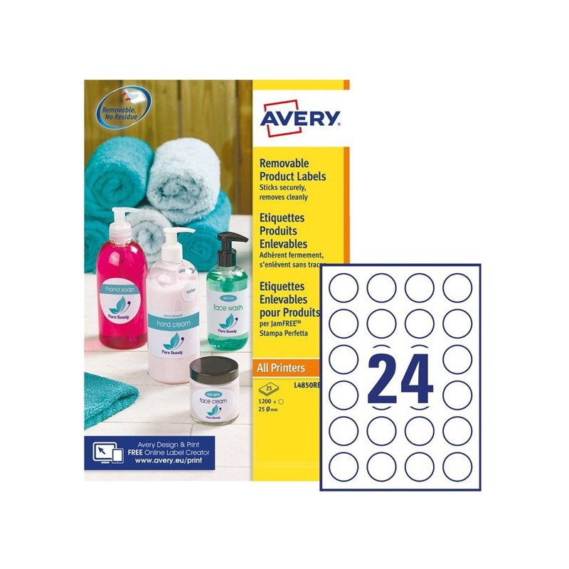 Etichette adesive rotonde rimovibili, idonee per stampanti laser e inkjet. Ideali per soluzioni di etichettatura temporanea, come ad