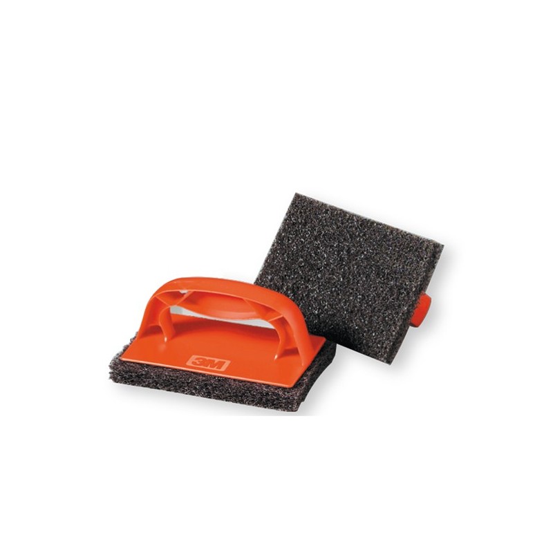 Il prodotto Scotch-Brick™ è costituito da un’impugnatura color arancio permanentemente saldata ad una fibra abrasiva nera per pulizie pesanti, ideale per rimuovere le incrostazioni da piastre e griglie.