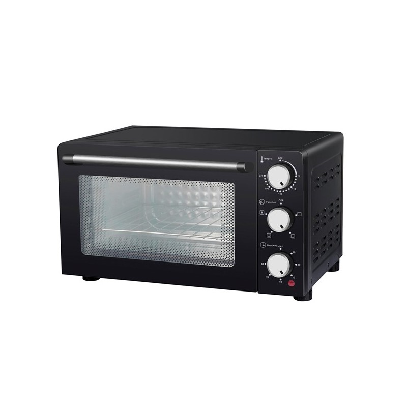 Forno da 24 litri a cottura ventilata con timer da 60 minuti e termostato regolabile fino a 230°C. Programmi di cottura selezionabili. Griglia e vassoio rimovibili. Potenza: 1200W. Dimensioni: 46x38,2x27,3cm - 7kg. Capacità 24 litri. Caratteristiche: • 5 Pareti interne in materiale antiaderente • Ventilazione e luce interna • Doppio vetro di sicurezza e pareti esterne termoisolati • Timer 60 minuti con segnale acustico • Termostato regolabile fino a 230°C • Resistenze in acciaio • Funzioni di cottura: base, grill, combinata • Indicatore luminoso di funzionamento • Accessori: 1 griglia in acciaio, 1 leccarda in materiale antiaderente, 1 pinza di presa leccarda • Alimentazione: 220-240V ~ 50Hz