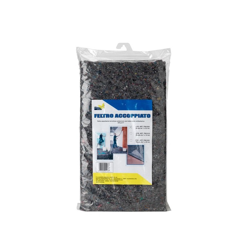 Feltro assorbente termofuso 220 gr/m2 con base antiscivolo in polietilene 40 gr/m2 privo di clorofluorocarburi, metalli pesanti, formaldeide, fungicidi e pesticidi. Confezionato in busta. Dimensioni: 1x3,5m. Articolo destinato ad esclusivo uso domestico. Non adatto ad uso pubblico.